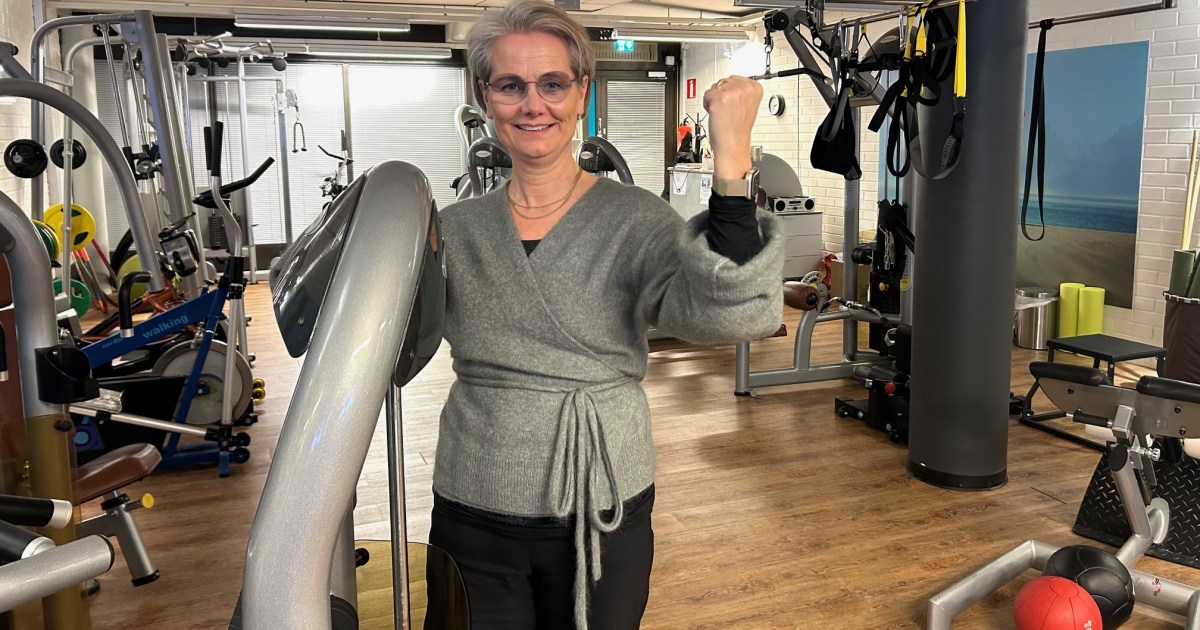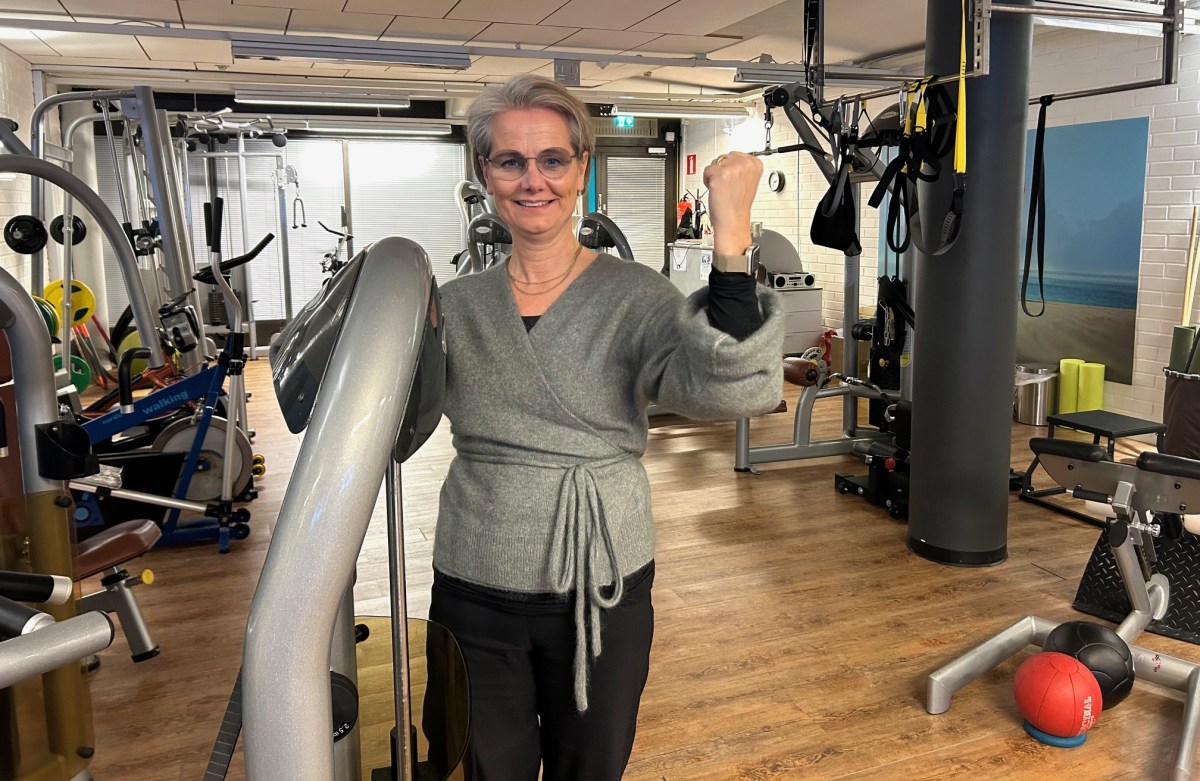 − Kuntosalin laitteet ovat helppoja käyttää eikä niitä tarvitse pelätä. Ja painoja voi lisätä pikku hiljaa, kun lihaskunto kasvaa, hän vakuuttaa.