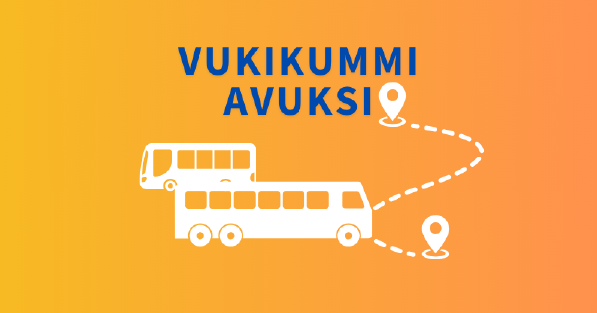 Kuvassa teksti Vukikummi avuksi ja kaksi piirettyä linja-autoa